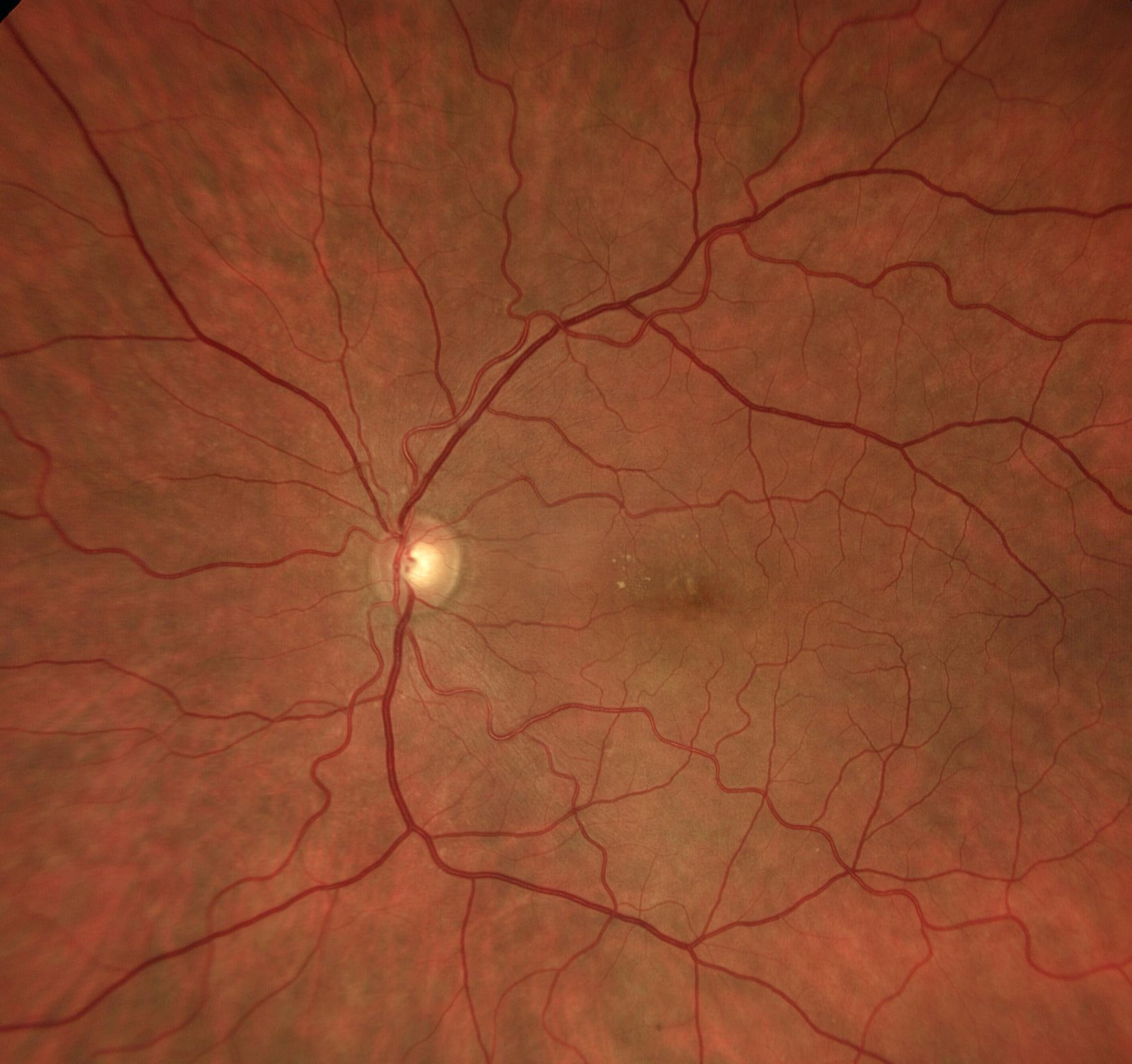 Présence de quelques micro-exsudats, suggérant une activité exsudative inhabituelle dans le contexte d’une CRSC simple.