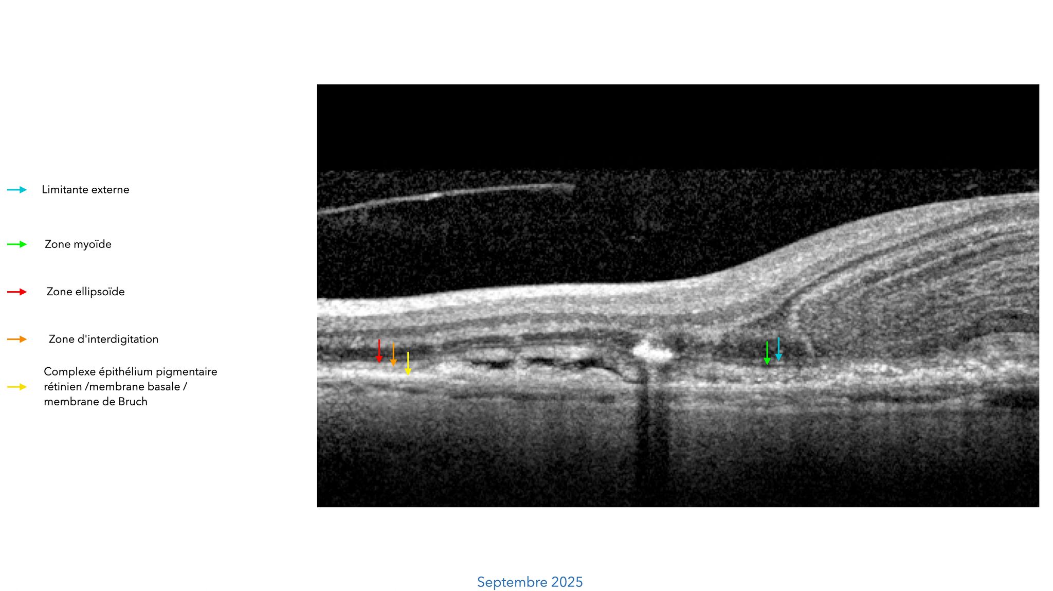 • une bande granulaire hyperréflective constituant la frontière antérieure